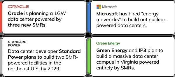 Oracle is already building a 1GW facility powered by three reactors. Microsoft has teams designing nuclear-powered data centers. Google just committed to 500MW of on-site nuclear by 2030.